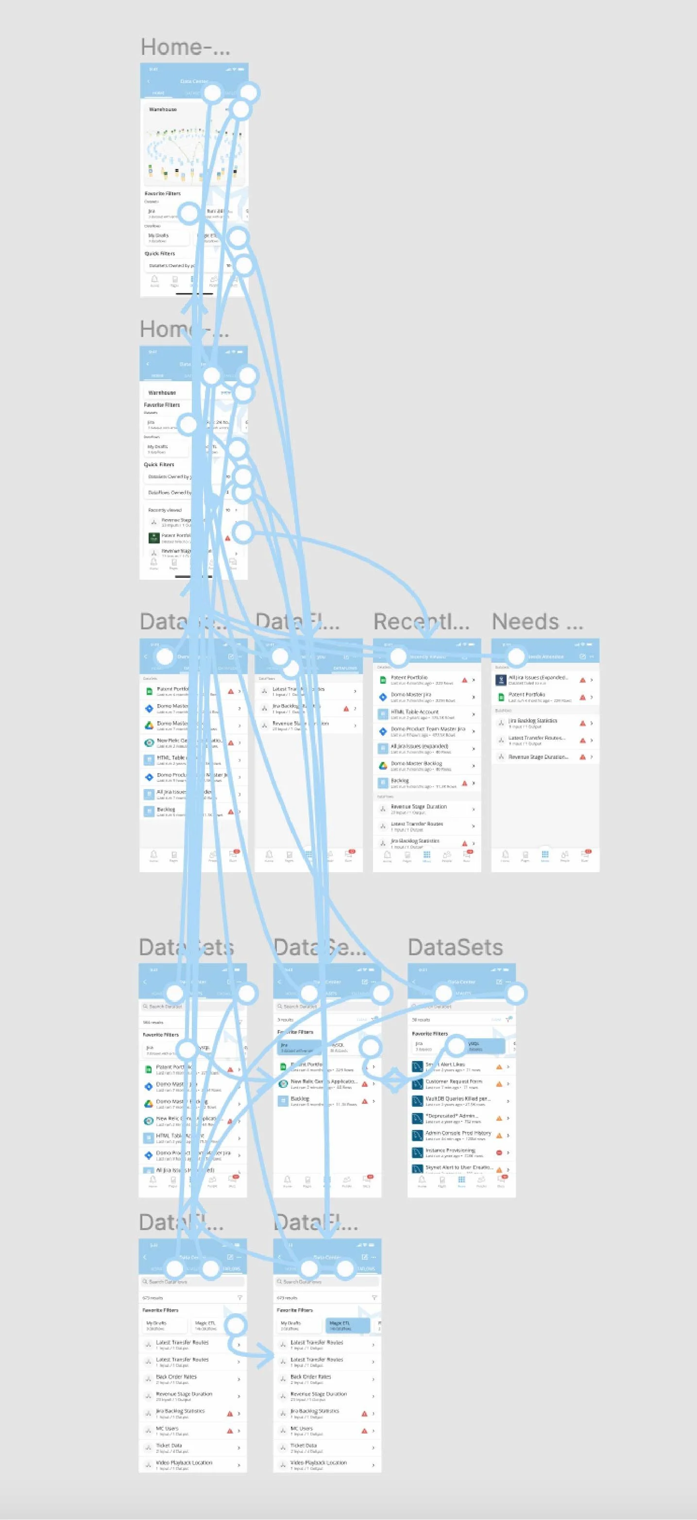 Overview of datasets/dataflows in progress.